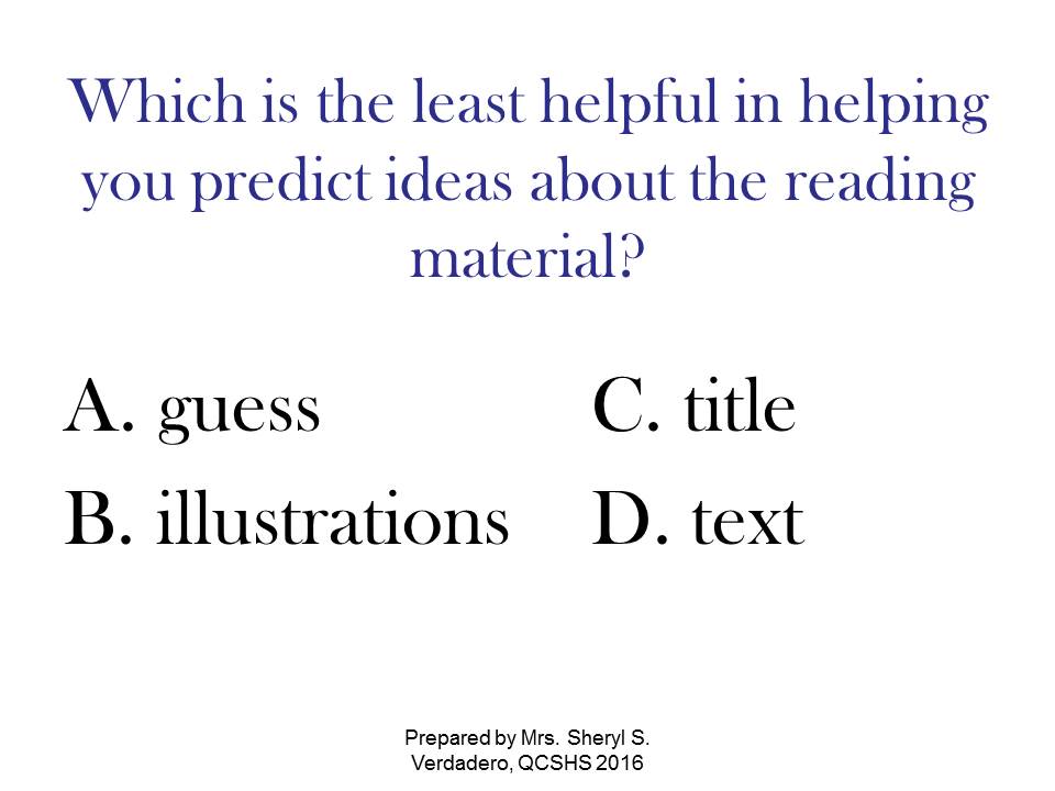 | June 10 – 14, 2019 | 4. Extracting Information through Text Structure | 2. Reading Exercises / Tests |